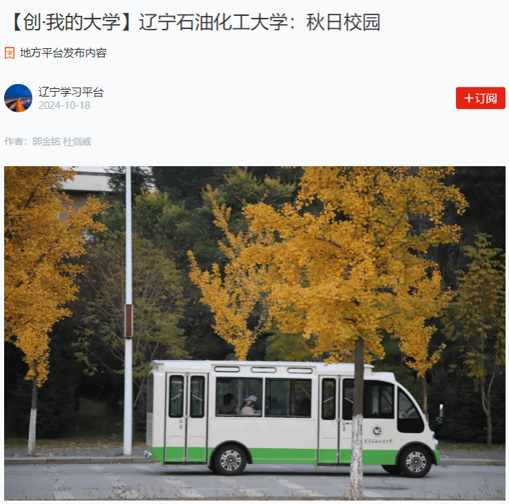 编者按:近日,学校风景如画,银杏金黄、枫叶鲜红,师生在秋日校园里纷纷拍照记录最美时光。学习强国辽宁学习平台对我校新媒体中心郭金铭、杜剑威同学拍摄的秋景图片进行了宣传报道。现将相关报道转载如下: