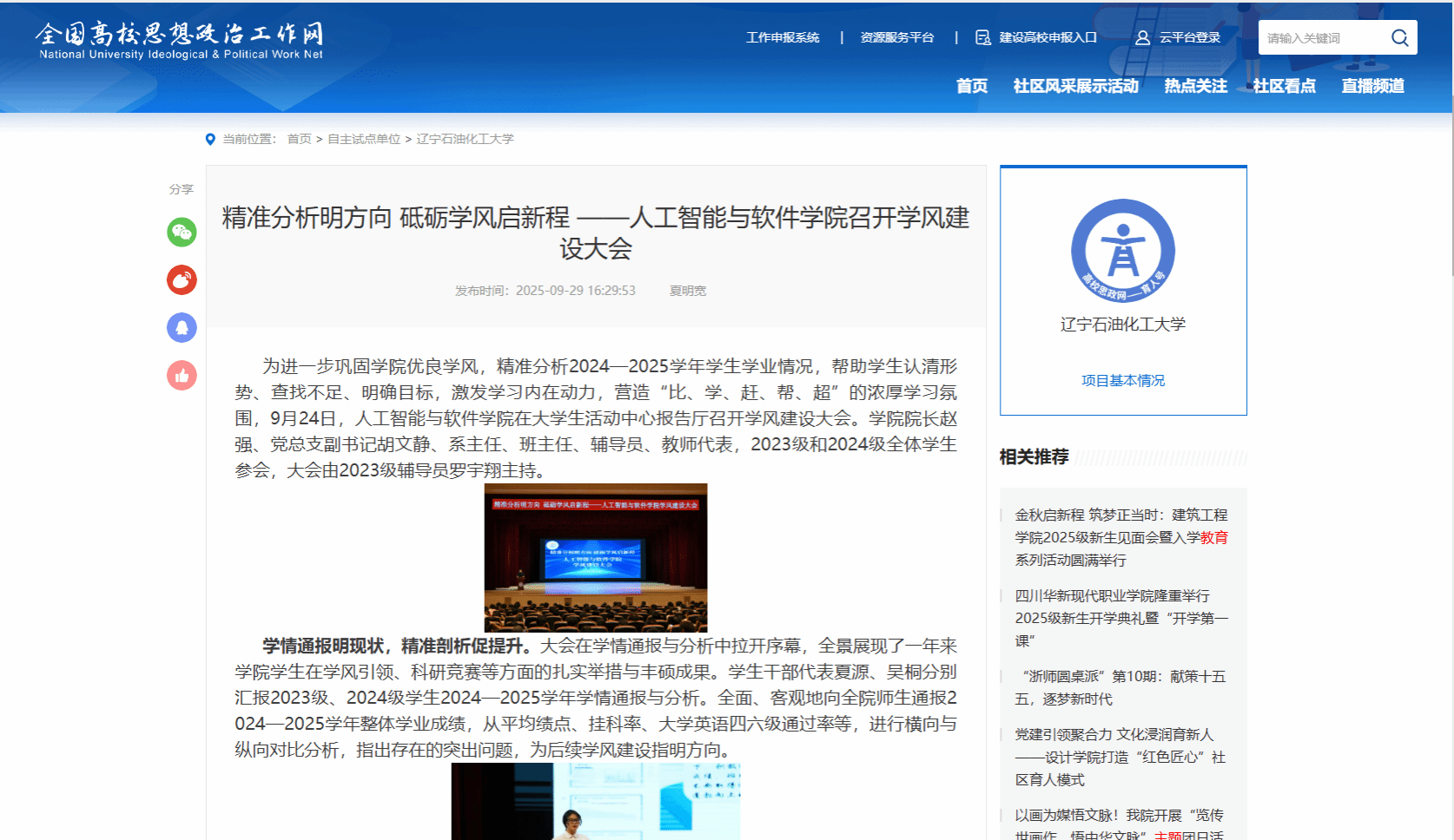 全国高校思想政治工作网:精准分析明方向 砥砺学风启新程——人工智能与软件学院召开学风建设大会